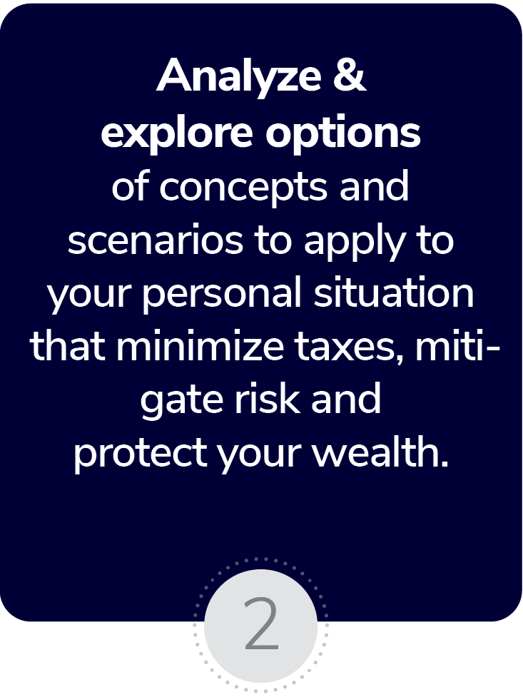 From optimizing corporate investments to business succession planning, we implement strategies that synchronize and enhance your personal and business needs.